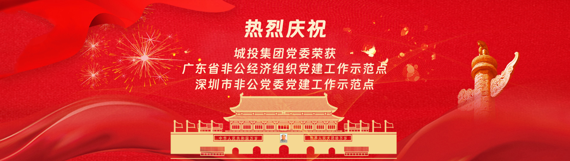 在上級黨委的正確領導下,在城投集團的大力支持下,集團黨委緊緊圍繞企業發展戰略,將黨建引領核心貫穿始終,以五心工程(即思政建設核心工程、經營發展中心工程、企業文化向心工程、黨建品牌匠心工程、服務基層愛心工程)為抓手,大膽探索,勇于突破和創新,不斷形成城投黨建特色,有效輸出城投實踐經驗,充分發揮紅色引擎作用,先后獲得深圳市非公黨委黨建工作示范點、深圳市兩新組織黨建工作示范點、深圳市文明單位、深圳市先進基層黨組織廣東省非公有制經濟領域黨建工作示范點等榮譽稱號。